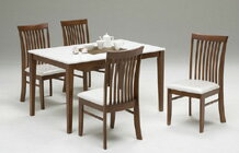 ■ ナチュラル派からモダン派まで納得、シンプルデザインのベーシックスタイル4人用ダイニング5点セットです。 ■ テーブルの天板はやさしい木目調、チェア座面はお手入れ簡単PVCレザー仕様、ダークウォールナット・ナチュラル・ブラウンの3色よりお選び下さい。 商品詳細 サイズ テーブル : 幅120cm × 奥行75cm × 高さ70.6cm、 幕板下高さ:62.2cm チェア : 幅43cm × 奥行47.5 × 高さ85.5cm、 座面の高さ : 45cm 重量 テーブル : 17.5kg、 チェア : 4kg 材質 テーブル天板 : 合成樹脂化粧繊維板 テーブル脚 : 天然木(アミノアルキド